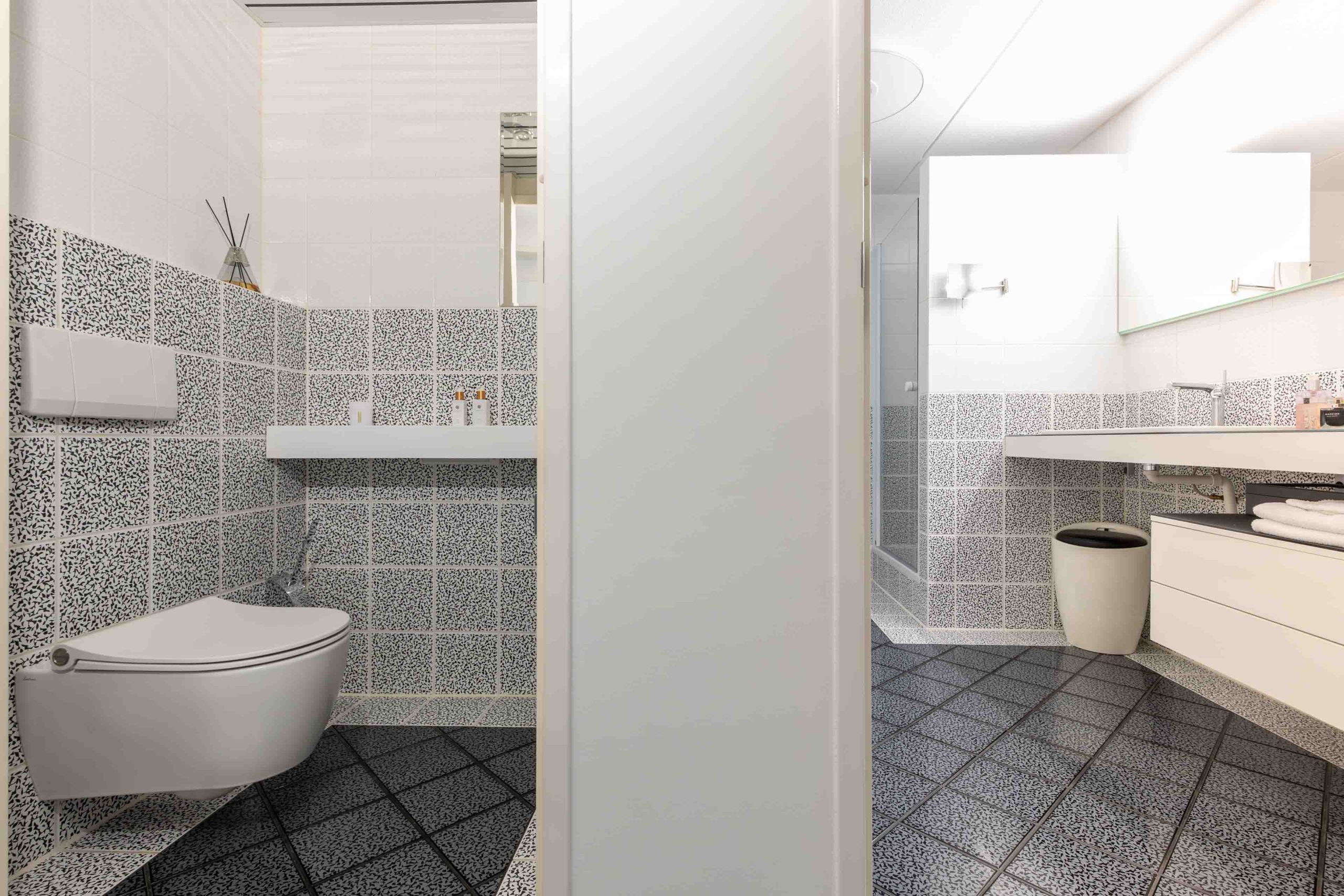 Zowel de badkamer als het toilet ademen weldadigheid en zijn pure Italiaanse ‘Art’ pieces.