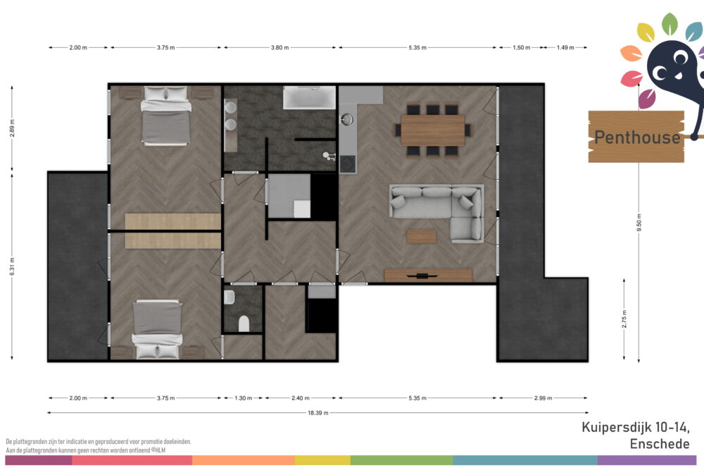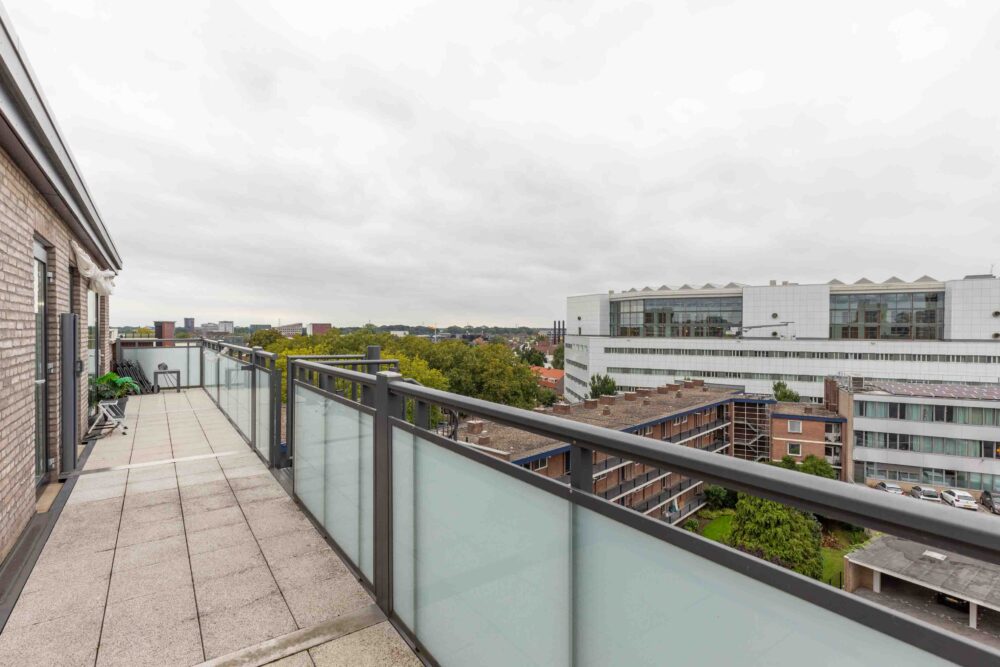 Je komt, “Just like in Dubai”, hier letterlijk met de deur in huis ‘vallen’ waardoor je jou direct in “The Place to be” bevindt. Je zal dan direct de 3 terrasdeuren openzetten en, net als de fameuze eerste bewoner, gaan genieten van de Skyline van de bruisende innercity van Enschede.
